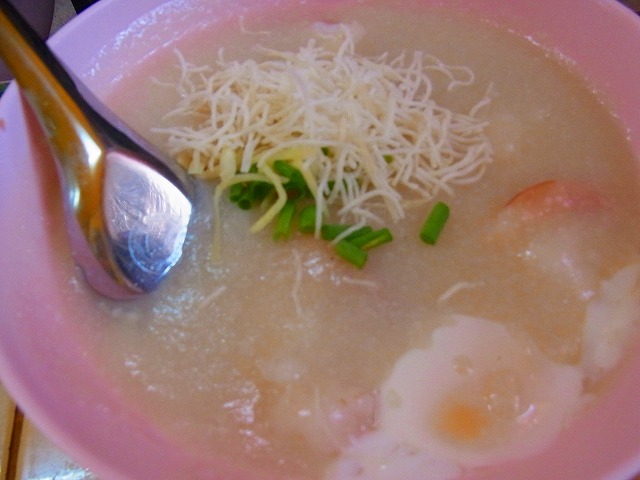 7時40分頃訪れましたが、お客さんでいっぱいでしたが、運良くすぐに入れました。お粥はエビ入り卵入り45バーツと、鶏肉入り30バーツを注文。クセが無くて食べやすい味でした。他に点心もあったので頼みました。一籠32バーツでしたが、イマイチな味でした。