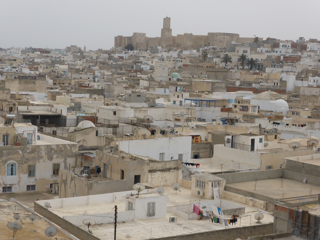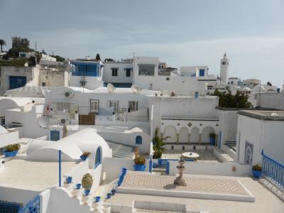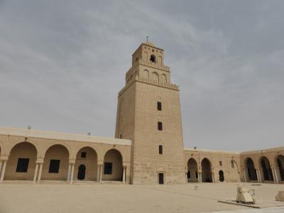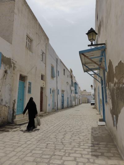白い建物に青いドアの町並みは沿岸部だけかと思ったら、ここでもたっぷり見られます。グランドモスク周辺はのんびりした雰囲気でいいのですが、ショハダ門付近は一気にツーリスティックになります。道案内人が声をかけてきてチップをねだられます。子供は小銭で満足してくれ、こちらも道を教えてもらえて満足したのですが、ある青年は小銭じゃ満足せず、あちこち案内しようとしてきたのできっぱり断り小銭だけ渡して別れましたが。ただ、メディナの中はとても入り組んでいてお目当ての場所を探すのは労力がかかるため、上手に使うなら時間短縮にもなって便利だと思います。ちなみにここはチュニジアの中でも特に暑い町だそうです。