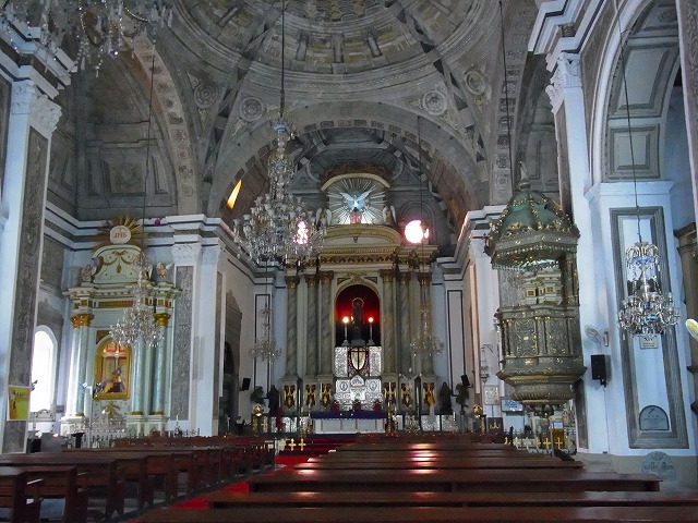 世界遺産の教会です。正面右手の建物から入れます。入場料100ペソで8時からでした。中は教会部分の他に、回廊のほうが博物館になっていました。展示数がけっこう多く、思ったより見て回るのに時間がかかりました。回廊にあったマリア像や、教会部分のシャンデリアがとてもきれいでした。