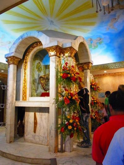 たくさんの人が訪れていました。フィリピン最古だという、美しい教会です。ここは幼きイエス像が有名で、前ローマ法王とその像の写真パネルもありました。祭壇に一体、出口の近くの別の小部屋に一体ありました。小部屋のほうはガラス越しに近くで見ることができます。併設されたギフトショップ(というか宗教グッズ売り場)は値段も安く、お土産になりそうなものもありました。
