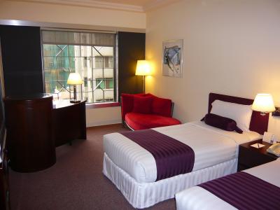 ツアーで利用。3人だったので、ベッドルームが二つある広い部屋で満足。他の二人組の日本人が部屋に入るなり「せまっ!」って声が聞こえたので、ツインは狭いのかもしれません。ホテルの周囲はローカルな市場があったり、マッサージ屋も数件あり、飾らない雰囲気のエリアで良かったです。ただ、ここに限らず台北のホテルの朝食は毎度味がイマイチで、ここもそうでした。