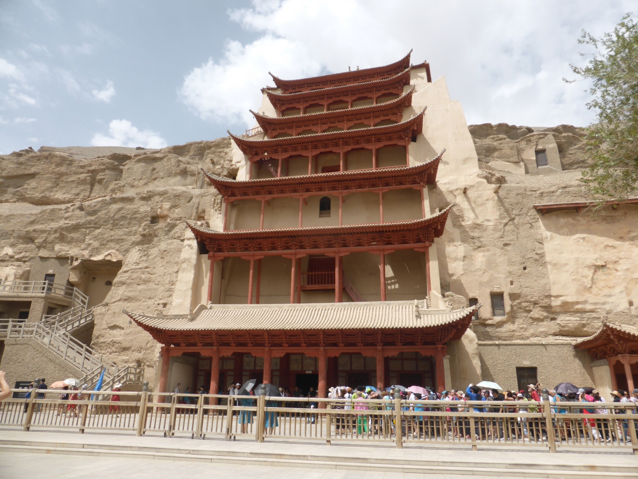 入場するには日時指定のチケットが必要です。外国人と中国人で枠が分かれており、出発前にホテルに頼んで予約してもらいました。発券にはパスポートが必要で、ホテルにチェックインした時にパスポートと料金を渡して発券してきてもらいました。シルクロードホテル前から12番の路線バスで簡単に莫高窟数字展示中心まで行くことができます。直接莫高窟には行けず、莫高窟数字展示中心でビデオを2本観てから専用バスで向かいます。その他詳細は旅行記に載せてあります。