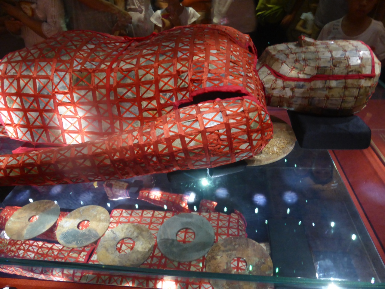 入場料12元ですが、日曜に訪れたところ10元でした。最初は展示物が並ぶ博物館ゾーンを歩き、途中で外に出て遺跡ゾーンを歩きます。最初は遺跡を上から見下ろし、その後階段を下りて中へ入るのですが、狭くて蒸し暑いので、団体とバッティングした場合は少し待って空いてから入ることをお勧めします。最後はまた室内に戻り、玉衣などお宝コーナーです。子供むけのコーナーや子供用パンフレットもありました。