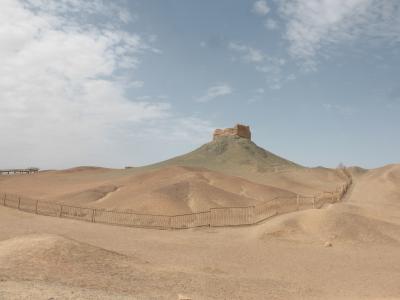 敦煌中心部から3路バスで簡単に行くことができます。砂除けカバーを15元でレンタルできますが、砂山の近くではなく入場してすぐのところにしかありません。暑い時期は裸足で歩くのは無理だと思います。