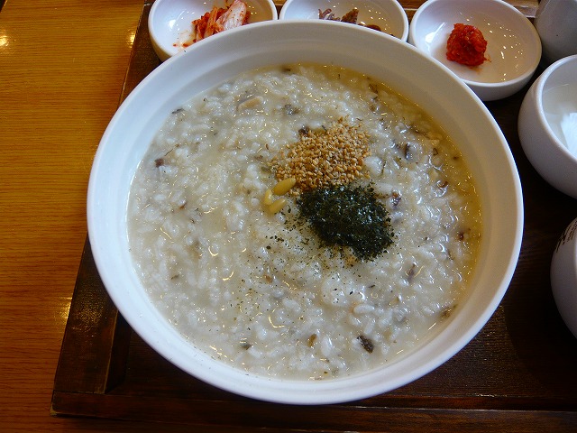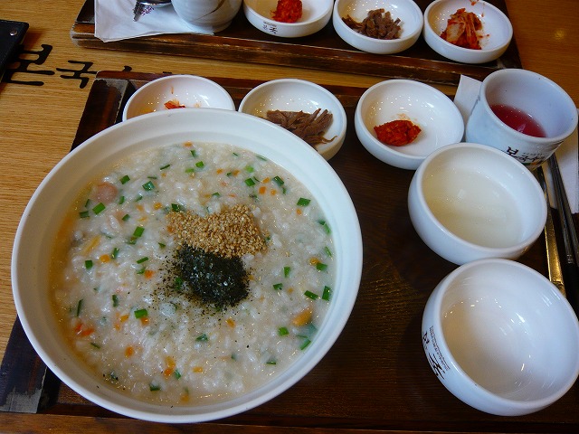 8時にロッテホテルに行かなければならなかったため、近くのここで朝食を食べました。開店直後だったので最初客は私たちだけ。海鮮粥と特あわび粥を注文。これがなかなか出てこない!!20分近くかかりました。時間が無くて急いで掻きこんだため、ゆっくり味わうことができませんでしたが、以前他のお店で食べた時と比べると、チェーン店って感じの味でした。お店は明るくきれいで広々してました。ここの本粥は麺もあったので、食べたいものが分かれた時にはいいと思います。