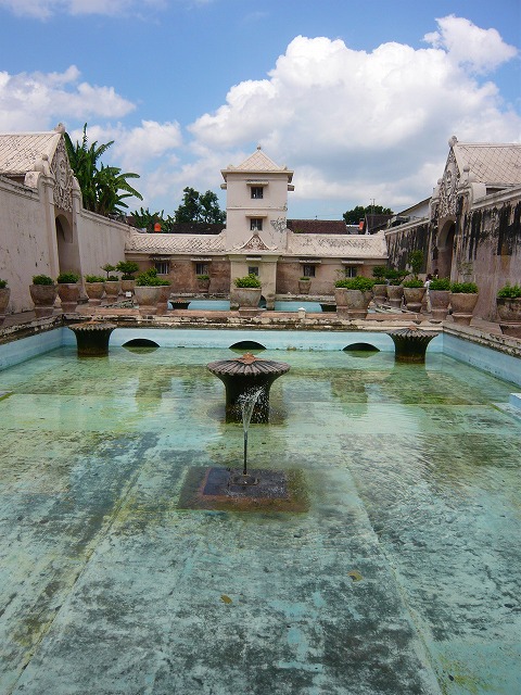 門をくぐるとプールが広がっていて、壁の白とプールの青のコントラストが涼しげで、素敵な場所でした。敷地はそんなに広くありませんが、ボロブドゥールやロロ・ジョングランと比べて観光客はまばらです。王様がプールで泳ぐ女性を品定めしていたという塔にも上がることができるので、ぜひ上って王様が眺めた景色を見てください。ここはとても狭いので、混んでいると順番待ちが発生するかもしれませんが。中で日本語で案内をするという人が声をかけてきましたが、断りました。