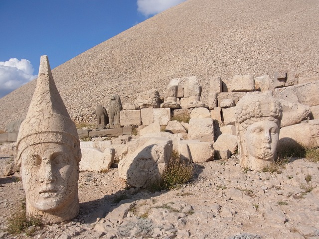 アドゥヤマンからタクシーを半日チャーターしました。ネムルトダー以外に周囲の遺跡観光込みで、言い値120リラでした。ここは日の出と日の入りが有名なのはもちろん知っていましたが、日の入りを待つとシャンウルファに戻るバスに乗れなくなるし、日の出は夜中に出発し、寒い中待たなければならないので、旅行序盤から体調を崩すのも嫌だったからパスしました。