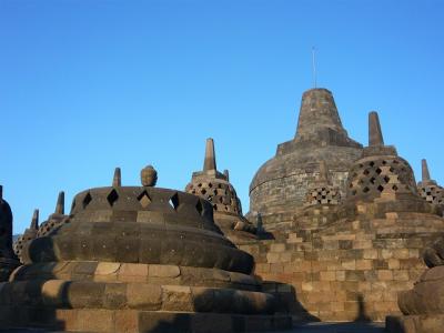 2010年10月のムラピ山の噴火の影響で、2011年7月時点では、ストゥーパのある円壇には入れません。ストゥーパの隙間から仏像に触ることはできませんし、横に並んで撮影することもできません。少し低いところから見上げることしかできません。ストゥーパの中の仏像を肉眼で見ることは何とかできます。- 旅行時期