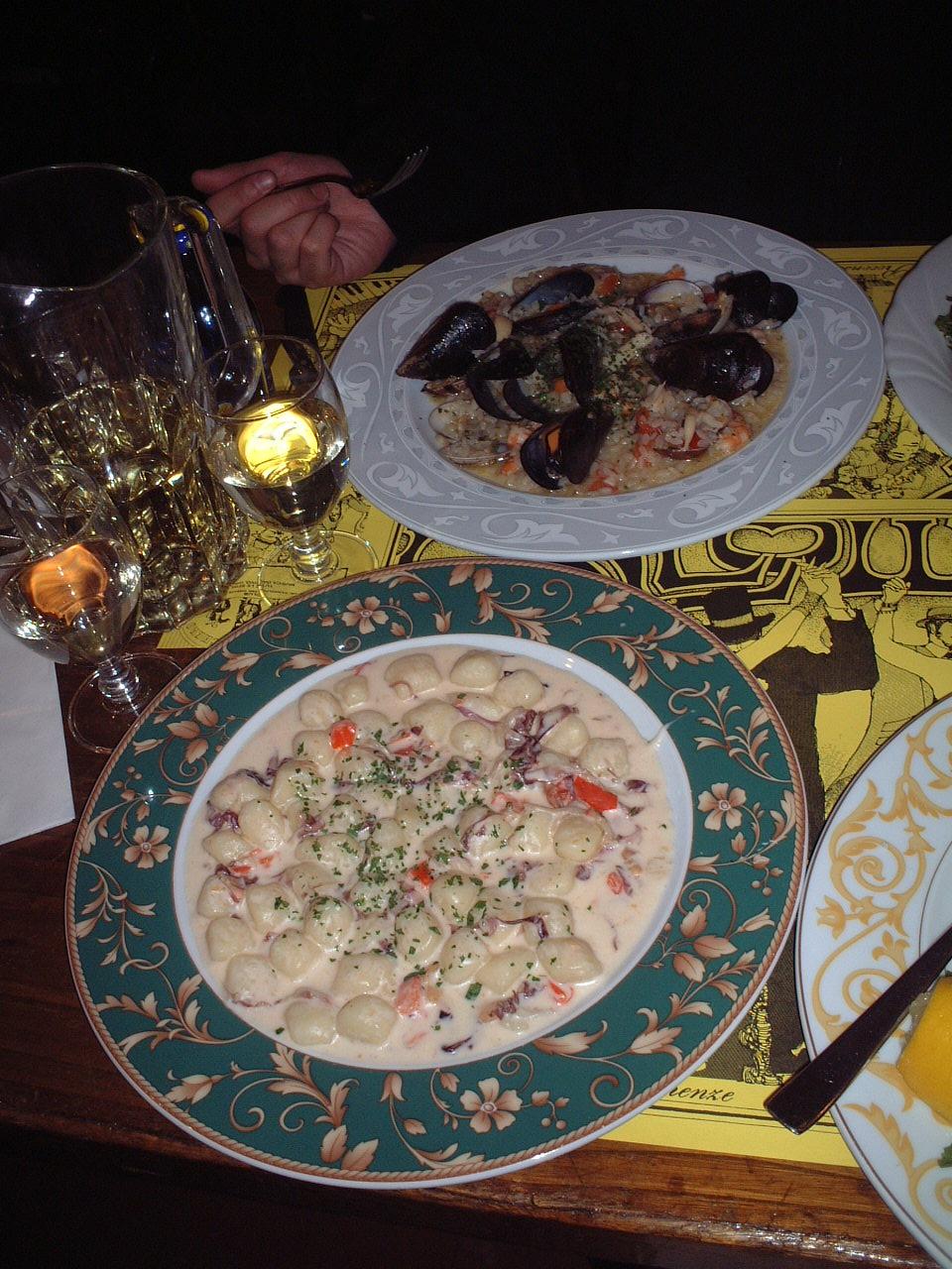 『冷静と情熱のあいだ』撮影中、竹野内豊のお気に入りだったというイエローバール。日本人観光客もそこそこいますが、現地人でも賑っているレストランです。ここは本当においしい!私はフィレンツェにいた三日間で2回行きました。ここで食べたメニューは魚介のリゾット(8.50ユーロ)・カルパッチョ(8.50)・ゴルゴンゾーラのニョッキ(7.50)・魚介のパスタ(8.90)・エビとルッコラのサラダ(7.50)りんごのケーキ(4.50)・ティラミス(3.70)・自家製白ワイン(6.20)・ブラッドオレンジジュース(2.60)・トマトパスタ(6.50)・野菜のリゾット(7.50)・ピッツァナポリターナ(6.50)・リコッタチーズ(5.50)☆写真は特においしかった魚介のリゾットとゴルゴンゾーラのニョッキです。またここに来るためにもまたフィレンツェに行きたい!!