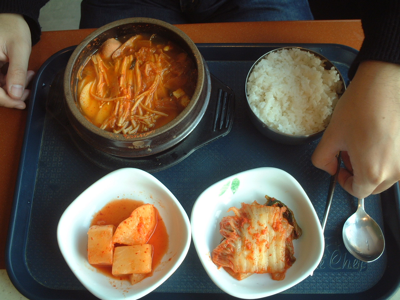ソウル駅のセルフ食堂は値段も手ごろでたくさんのメニューがありました。入口のところにメニューが書かれており(ハングルと英語表記)、レジカウンターで注文。番号が書かれたレシートをもらって席をとり、料理が出来たら番号が表示されるのでとりに行きます。(メニューによって受け渡しのブースが違います)最初は勝手がなかなかわからなくて困りましたが、今思えばシステムが理解できます・・。ここで食べたのは鮑粥(5000ウォン)、マンドゥ(4500ウォン)、ブデチゲ(5000ウォン)です。量は少なめなのでいくつか頼んでつまむのがいいかもしれません。写真はブデチゲです。インスタントラーメンは入っていませんでした・・。
