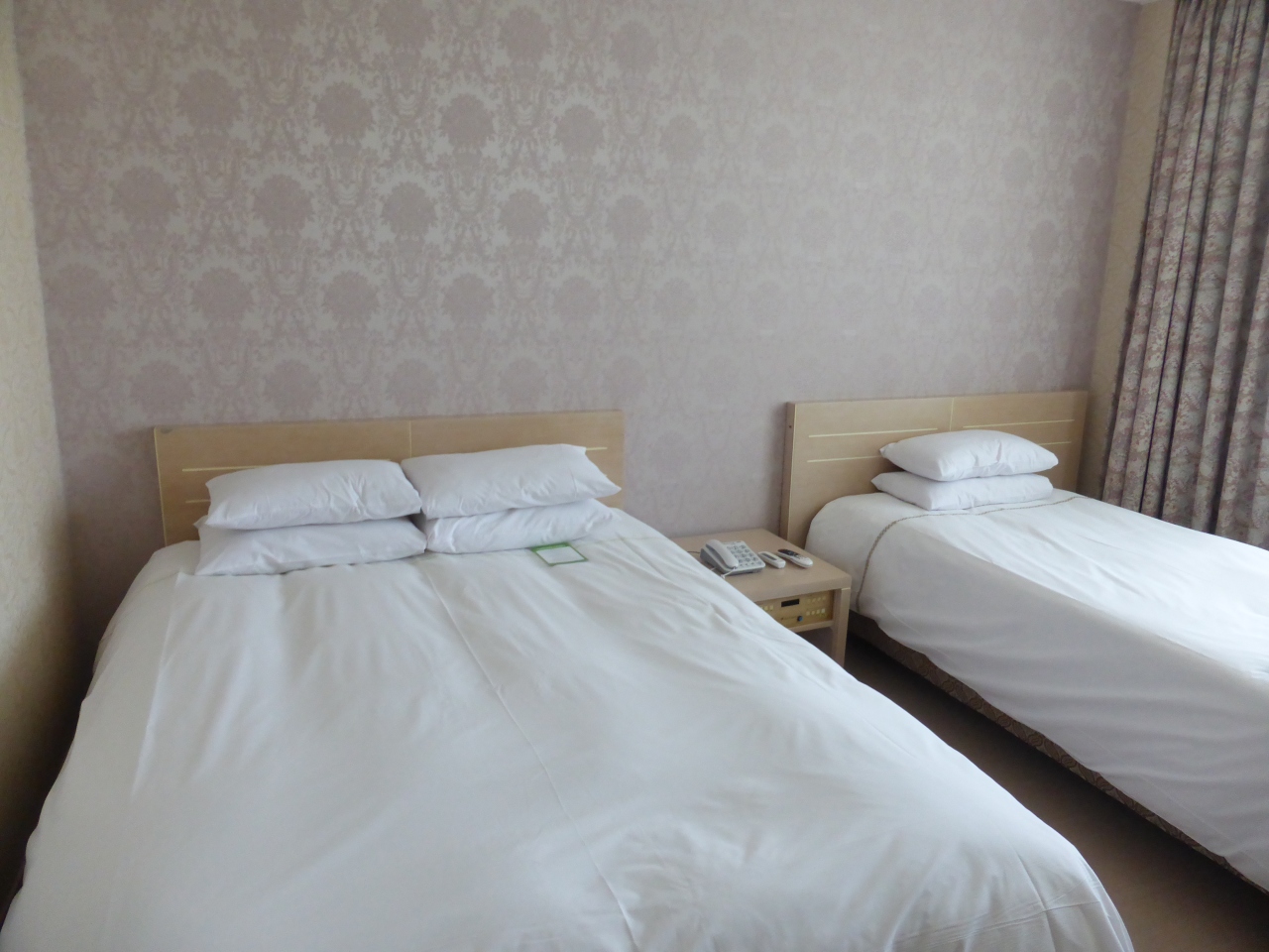 ホテルはかなり年季が入っていますが、結婚式もできるようなホテルです。駐車場は真裏にあり、フロントまで裏口から入れますが階段があるのが不便でした。部屋は最大4名泊まれるようですが、はたして4枚布団を敷けるのか?という広さです。風呂トイレ別なのは良かったですが、水回りが少々臭いました。朝食ビュッフェは品数も多くて良かったです。