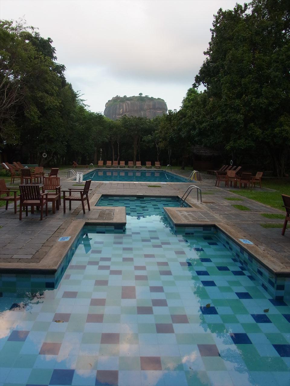 一泊一室約12000円で宿泊。近くにあるシギリヤ・ヴィレッジと迷ったが、コテージタイプの部屋があまり好きではないのと、プールから眺めるシギリヤ・ロックの写真を見てこちらに決めました。夕食はホテルのビュッフェを利用しました。ビュッフェ二人分+ドリンク二杯で4300ルピーでカード払い可。種類豊富でおいしかったです。この日は満月の日だったのですが、お酒は×とのことでした。部屋は飾り気はないし古めかしく、この値段の割にはイマイチでした。アーユルヴェーダマッサージもできますが、当日だとフル・ブッキングでだめでした。