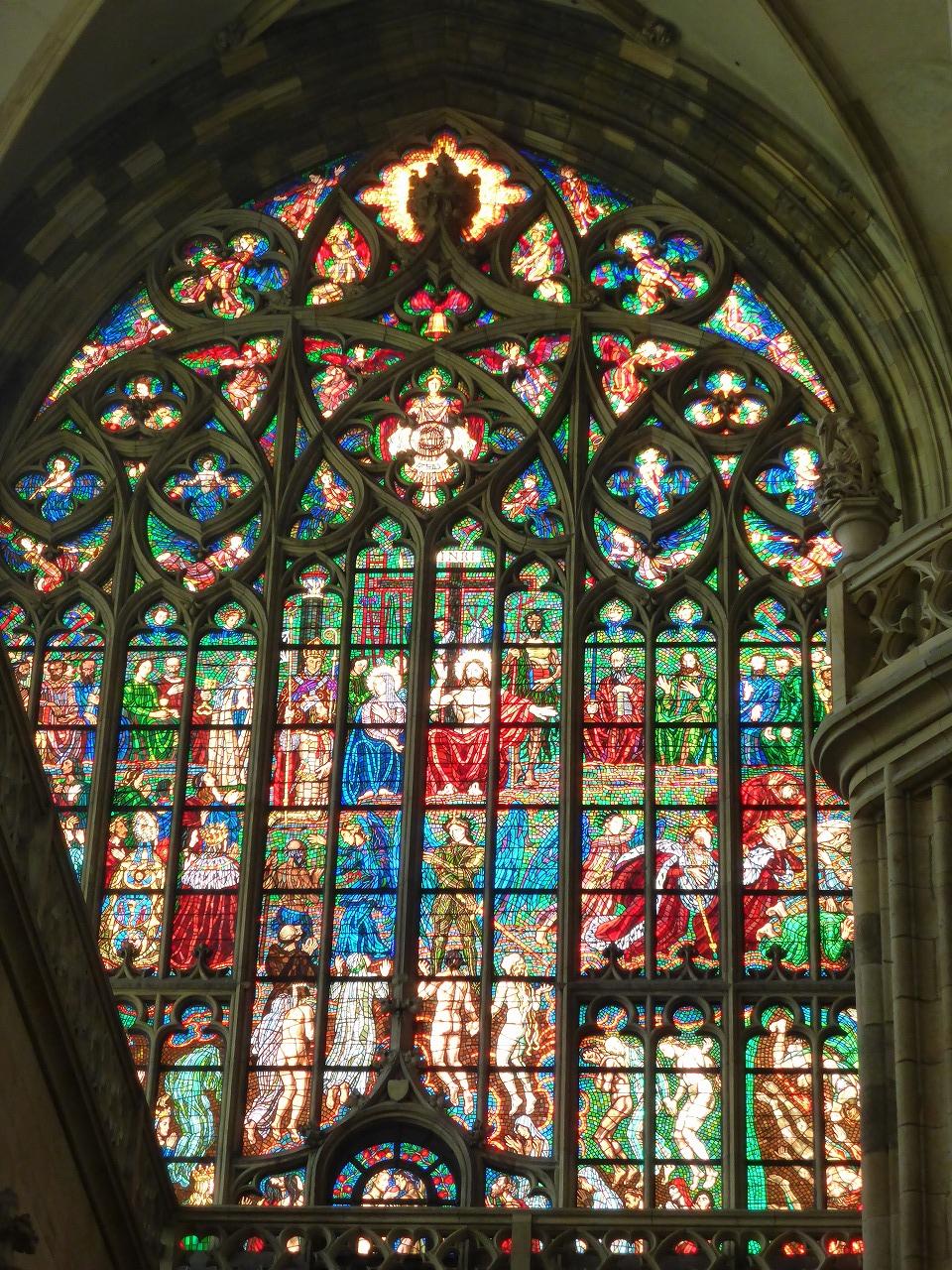 プラハ城の敷地内にある大きな教会です。無料で入れますが、無料ゾーンは入ってすぐの限られたエリアだけで、奥に行くにはチケットが必要です。(プラハ城共通券250コルナ)有名なミュシャのステンドグラスは手前にあるため、無料ゾーンからも見えはしますが、正面から見るためにはチケットが必要です。内部は美しいステンドグラスがこれでもか!ってくらいたくさんあり、好きな人には堪らない場所です。日曜は12時からしか入れないため、12時には入場に列が出来ましたが、進みは早いです。