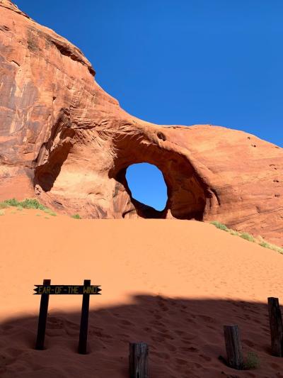 ナバホ族がガイドする、バレーツアーに参加しないと見れないEar of the Wind。風化によって自然に穴があいたと思えないアートだ。ガイドツアーの最後に見せてもらいました。自分達の車では行けない場所ということもあってか、このあたりの雰囲気は少し他と違う気がしました。