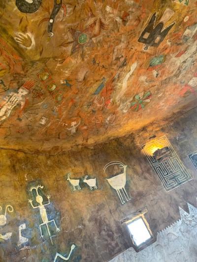 目のような形に削られた岩から空を眺めることができます。これだけでも不思議な世界へいざなってくれるのですが、すぐそばには昔の先住民が描いたと言われる壁画があります。なぜここに描いたのか、どんな意味があるのか。昔の先住民もこの岩を眺めていたのかなという気にさせてくれます。