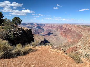 深い渓谷をつくり、いまの絶景グランドキャニオンをつくりだしたコロラド川。ヘリツアーなどでも見れるが、デザートビューからも眺めることができる。この川がこの2000m程の渓谷をつくりだしたかと考えるとロマンを感じます。