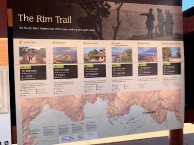 このビジターセンターの周りには、トレイルの情報が書かれてある観光掲示板がある。また、日の出と日の入りの時刻が書かれている日もあった。常に混雑しており、お昼間に案内所の方に伺おうとしたが、待っている人が多すぎて断念した。