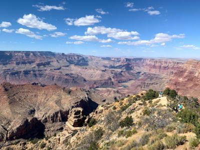 サウスリムのビューポイントの中でも有名なデザートビュー。ここには展望台があるため、少し高いところからグランドキャニオンを眺めることができる。展望台へは階段を登る必要があるため、車いすの方はでの観光は少し大変そうです。