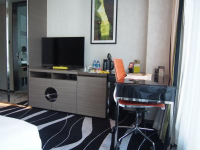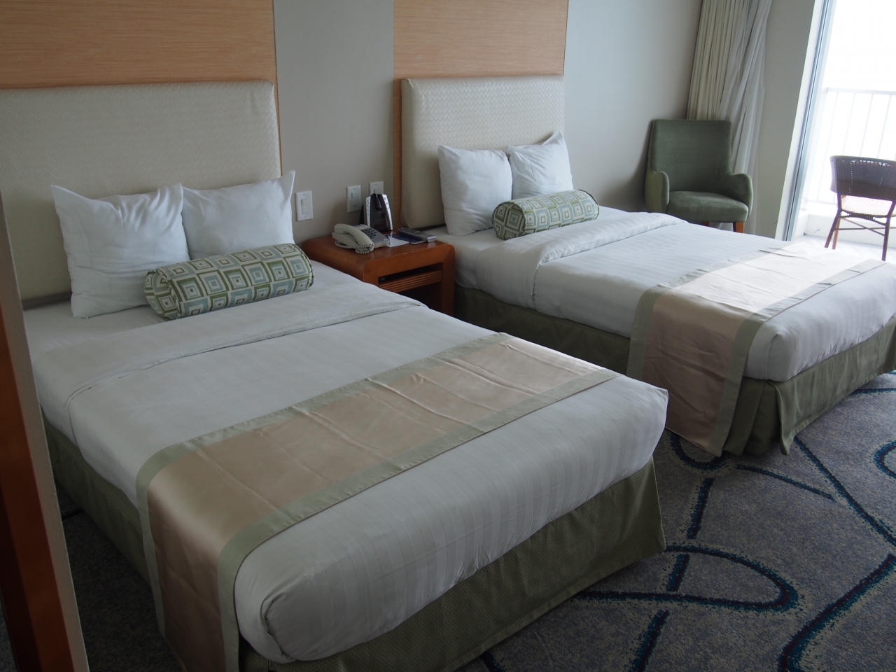 私が気に入っているのは、部屋のバスがジャグジーであること、冷蔵庫の中身(ソフトドリンク)やスナックがフリーである事、タオルがフカフカの厚みのあるもの、そしてスリッパも使い捨ての割にはフワフワしていることです。