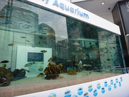 炎天下でもビル前の巨大水槽を見ると少し涼しい気分になります。