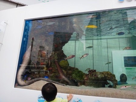 毎年夏は沖縄の美ら海水族館の協力で水槽を設置していますね。