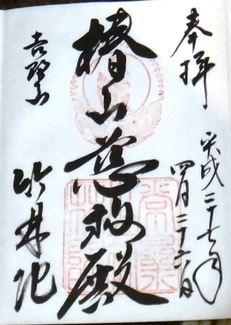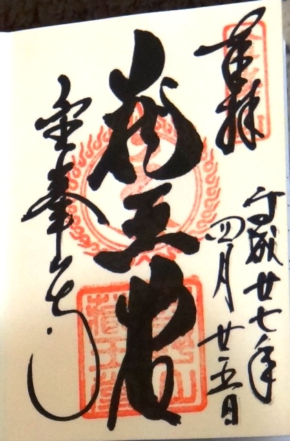 昼間の入口脇にある特設の朱印所は閉まっていましたが、お堂出口でお守りなどを売っていて、そこで御朱印をお願いできました。誰もお願いしていなくて不安でしたが、手持無沙汰だったのか書置きをカウントしていらしたのでお声がけしたところ、蔵王堂の御朱印をいただけました(御開帳中なので蔵王大権現かと思ったのですが…)