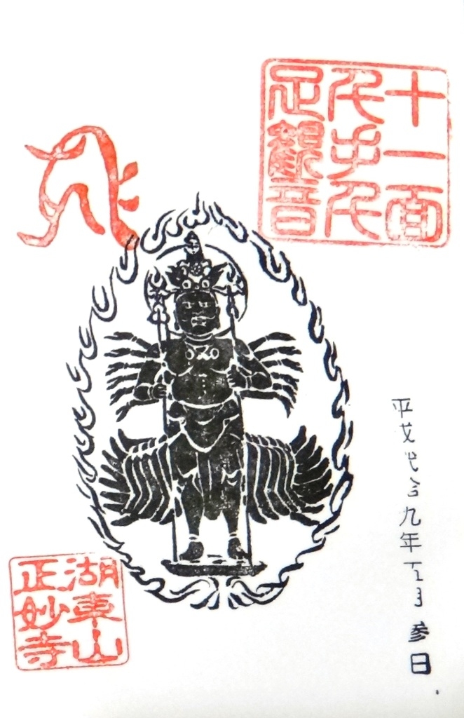 正妙寺に安置されている千手千足観音のスタンプがあったので、御朱印風にスタンプしてみました♪- 旅行時期