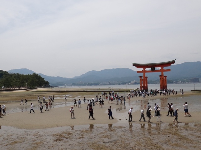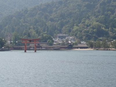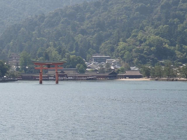 日中はJRのフェリーが大鳥居寄りに運航すると聞いてそれに合わせて行ったのですが、それより早い便でも「今日は日曜なので大鳥居に近づきます」とのことで、まもなく出向というフェリーに乗って宮島へ向かいました。