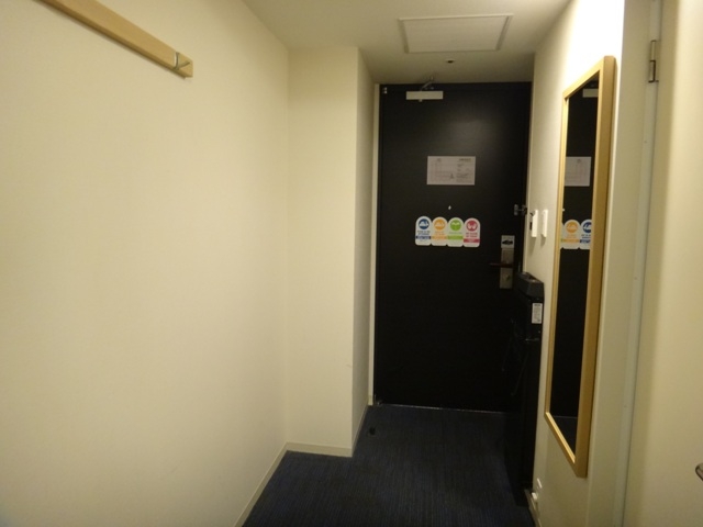 普通、この手のホテルだとお部屋の通路はドアの幅分しか確保されていないことが多いですが、こちらのホテルはドアの幅+柱分あって広いのに、価格は周辺相場と変わらず…