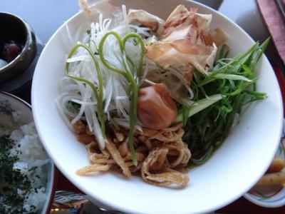 お昼は茶そばか茶うどんで、具に少しバリエーションがある程度ですが、観光客にはこれで十分かと。茶うどんはそばより少し太いだけの丸い稲庭うどんみたいな感じです。