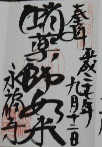 通り道で、仏像かお庭か御朱印が良さそうな寺社仏閣は無いかしら?と探して見つけたこちらの神社。御朱印をいただいたら普通に「藤森神社」。あれっと思って「左馬の御朱印はないんですか?」と思わず聞いてしまったら、「御朱印はこれだけです」と言われました。別のところと間違えたのかとあらためて検索すると、左馬の御朱印なのはどれも平成26年(午年)の一月にいただいているものばかりでした。ということは干支が一周するまで待たねば…