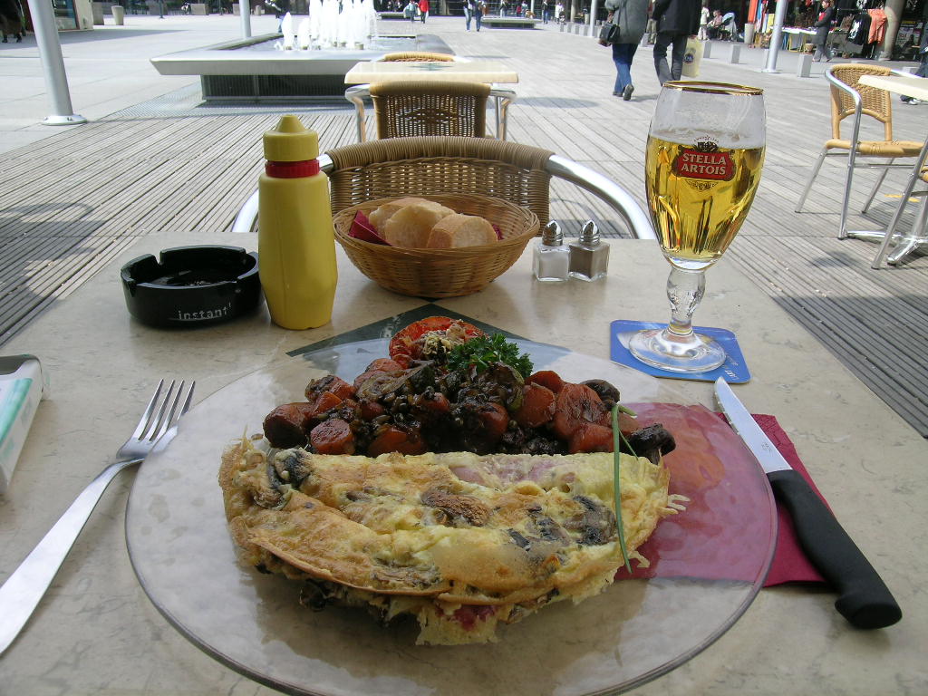メトロ、ドゴール駅前、人工地盤公園の真ん中にあるテラスレストラン「la dalle」は、今回の旅行で一番良かったレストラン。