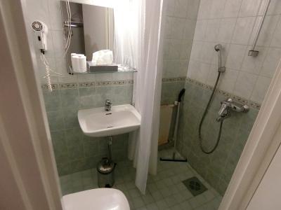 - シャワー室にはスリッパもありました。少しトイレの方が濡れないか気になる構造でした