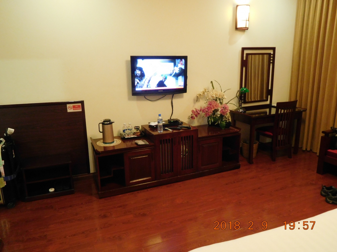受付の方はとても親切です。食事もホテルの割には市中の食堂と値段は変わりなく、部屋でも食べる事が出来ます。- 旅行時期