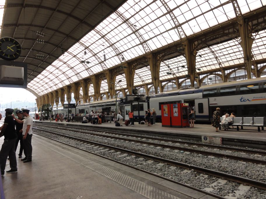 空港からニース市街地までバス移動しました。空港を出るとバス乗り場がありました。チケットは4ユーロで、ニース市内の一日乗車券として使えます。(このチケットでは、モナコまでは行けませんでした。)車内の刻印機を通します。バスは20分毎にあり、市内まで約20分。8時半ごろに乗車しましたが、結構混雑していました。