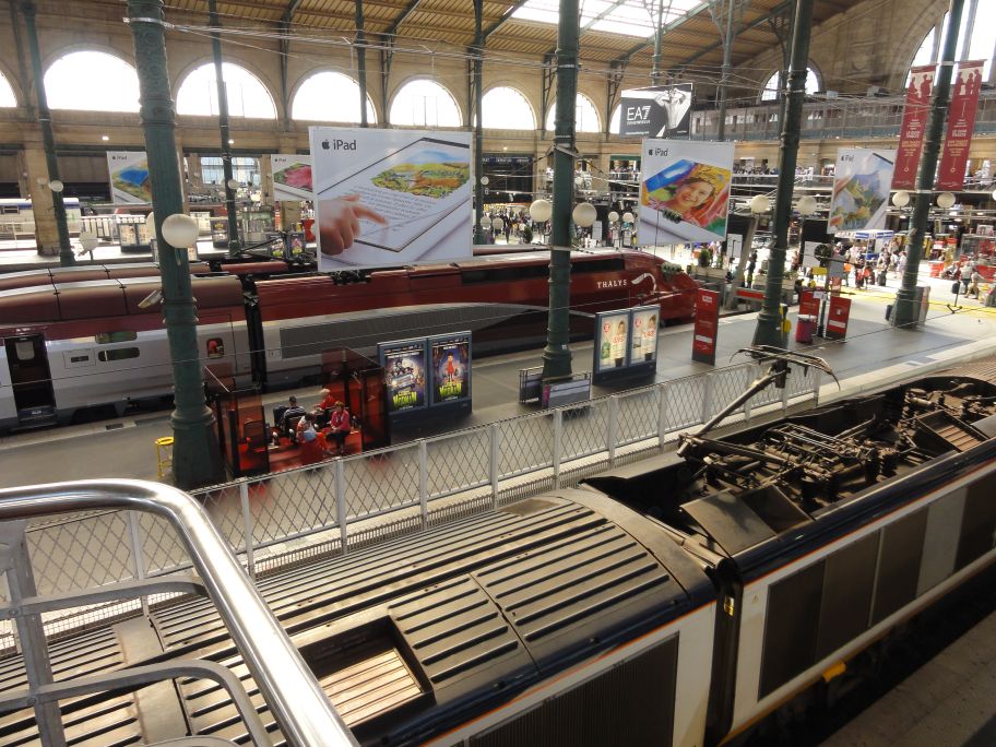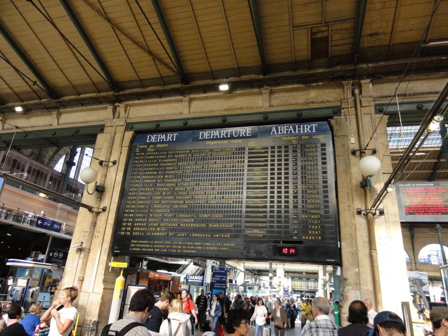 各国に向かう国際列車がたくさん発着しており、混雑していました。ユーロスターに乗車するために利用しました。ユーロスターは2Fにエスカレータで上りますが、持ち主不明の荷物が見つかったため、1Fに降ろされてしまいました。結局、出発は30分程度遅れました。