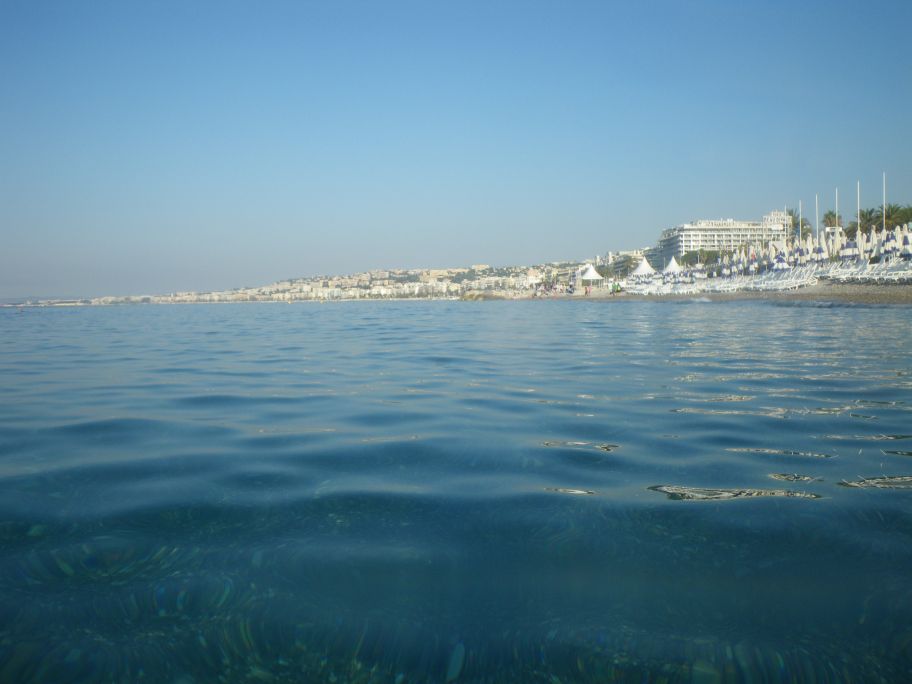 マセナ広場からすぐのパブリックビーチに行き、泳ぎました。シャワーもあり、設備も充実していました。ただ、割れたビンのかけらなどがちらばっていたので、サンダルは必携です。プライベートビーチからもれてくる音楽を聴きながら、楽しく時間が過ごせます。すぐ深くなり、足が着かなくなるので、子供は要注意です。でも、透明度は思ったより高く、底まで十分見渡せます。