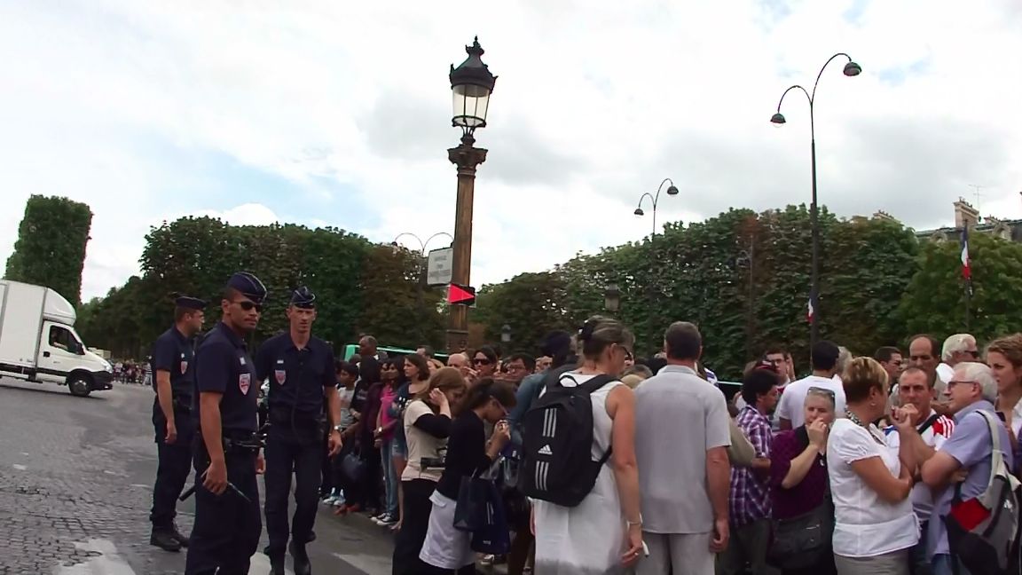 シャンゼリゼを凱旋門からスタートし、レンタル自転車で走っていると、どんどん人が増えてきて、警察官が規制を始めました。そのうち、幾重にも人垣ができてきて・・・。その前を、自転車で通り抜けました。暫く休憩していると、なんとフランスのメダリスト達が2階建てバスに乗って、凱旋パレードが始まりました。銀座のパレードに比べれば、人垣は少なかったですが、びっくりでした。