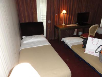 部屋は改装を終えたばかり(天井の一部は、ペンキ塗りの途中のような?)で、非常におしゃれできれいでした。部屋も機器も、すべてぴかぴかでした。セミダブル+シングル+補助ベッドで、家族4名、ぐっすり眠れました。