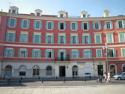 ロケーションは最高でした。マセナ広場に面した入り口から入って2Fにあがると、ホテルの入り口があります。夜10時以降は鍵が閉まるとのことで、マセナ広場に面した入り口と2Fのホテル入り口の暗証番号を教えてくれます。空港からの98番バスに乗り、海岸沿いの道を左折したバス停"Albert 1er garden"で降りて、徒歩2分ぐらいです。