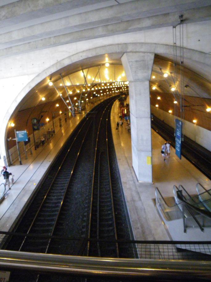 利用当日は、持ち主不明の荷物が見つかったということで、全員1Fに降ろされ、出発が30分ほど遅れました。車内アナウンスもほとんど無く、気がついたらドーバー海峡トンネルに入っていました。イギリスに入り、ストラドフォード駅(オリンピック会場駅)が見えたら、数分でセントパンクラス駅です。電車を降りたら、改札もなく、そのまま外に。