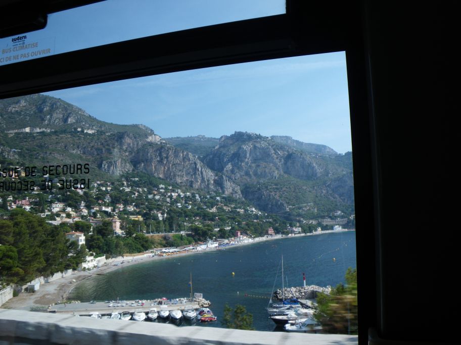 ニースからモナコまでバスで移動しました。約45分かかりますが、1ユーロと非常に安価。現在、ニースの中央バス停は工事中のため、暫定バス停から出発しますが、トラム停の前で非常に判りやすい場所にあります。進行方向に向かって右側に座ると、海岸線を見ながら行けます。途中、渋滞した箇所もありましたが、わりとスムーズに行けました。海岸線を行くので、乗り物酔いする方は、薬を飲むと安心かも。次のバス停案内が無いので、目的地の近くまで来たら、注意しましょう。