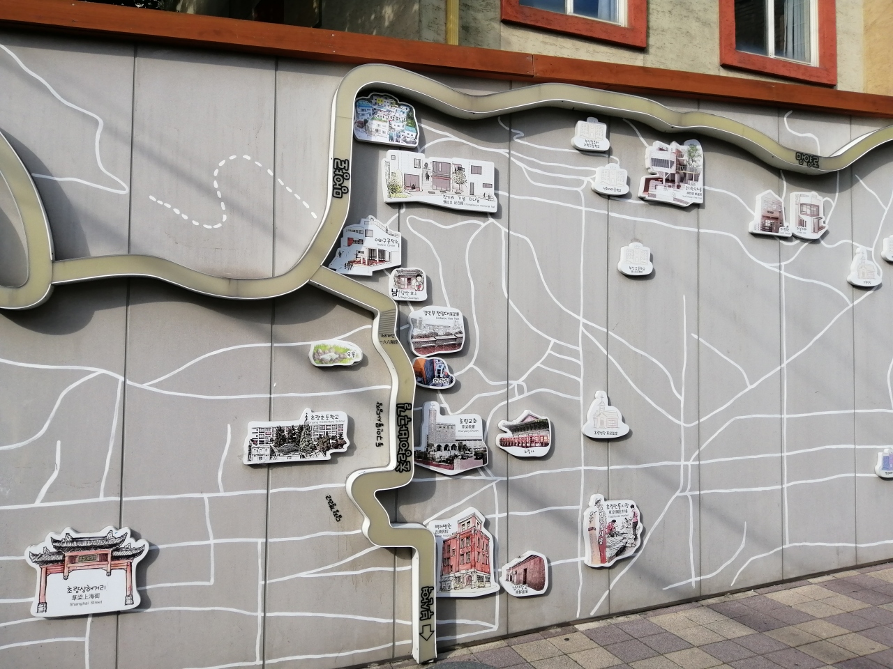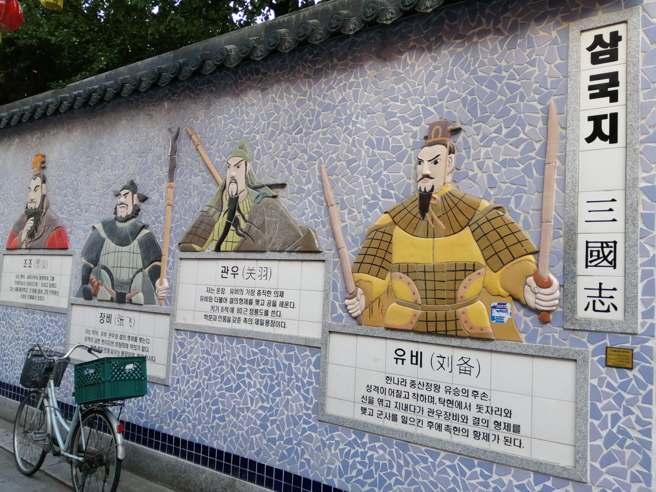 釜山駅前の大通りを1本入ったところにありました。赤い提灯が飾られていてすぐにチャイナタウンとわかります。中華料理のお店が多かった気がしますが、早朝でまだ開店していませんでした。それでも銅像や学校の壁画の三国志などを見て回ることができました。またこの通りは、テキサスストリートへも通じています。