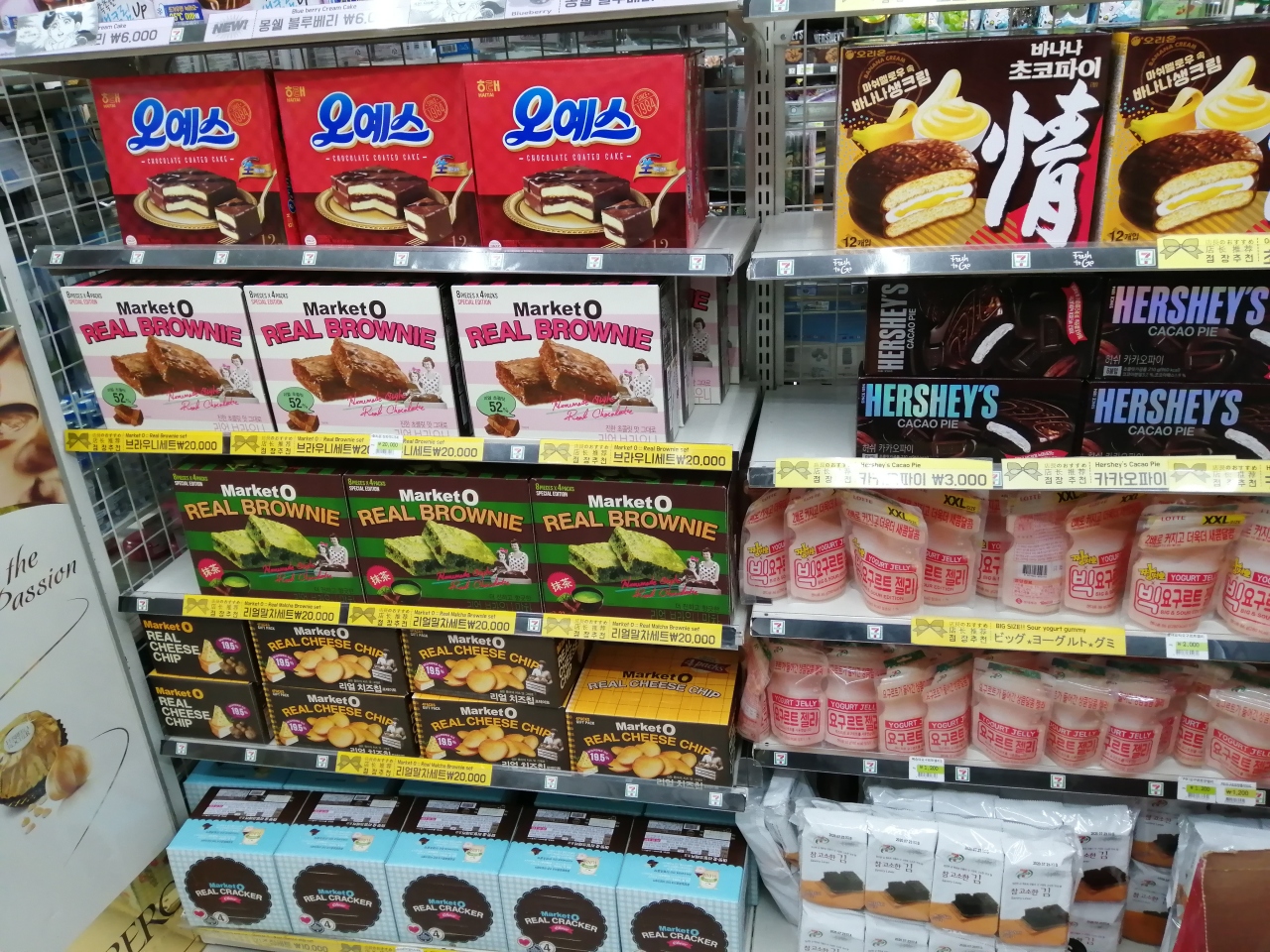 早朝の帰国便に搭乗するため、AM6:00過ぎに出国エリアに入りましたがすでに開店していました。出国エリアに入ると左手にあります(正面のロッテ免税店から見ると右斜め前)定番のヤクルトグミやリアルブラウニーも置いてありました。