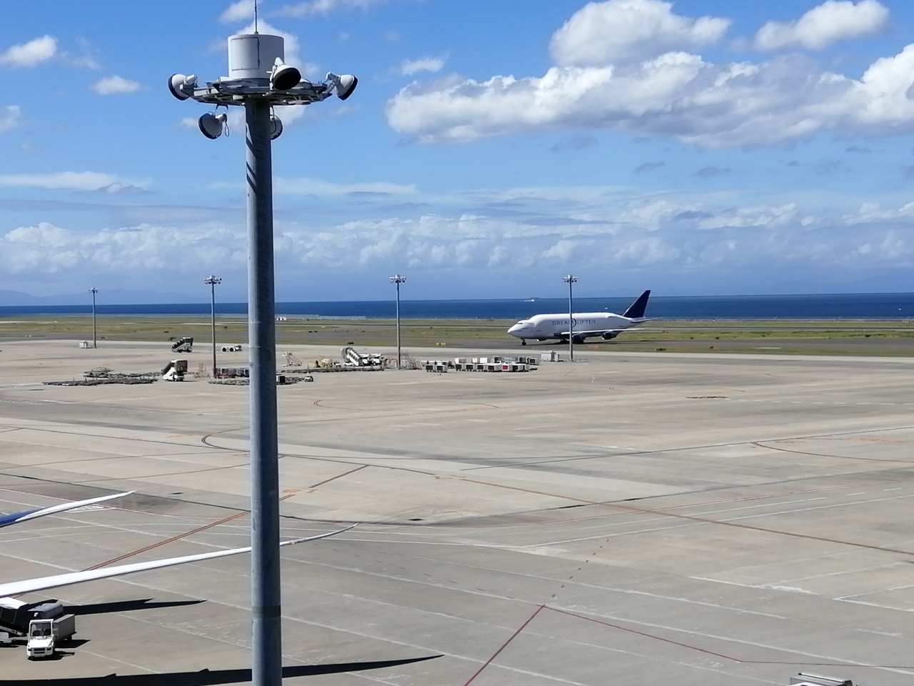 中部国際空港セントレアの3F出発フロアの中央エスカレータを上り奥に進み外に出るとスカイデッキに出ます。無料です。滑走路が正面にあり離発着の光景は迫力があります。右側は国内線で左側が国際線になっており各国の機体が見れます。この日は運よくドリームリフターが見れました。