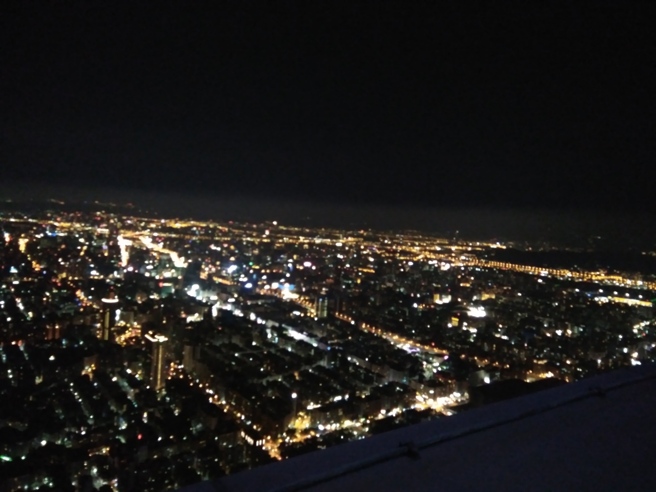 モール5階のチケット売り場まで上がり、チケットを購入したのち少し順番待ちしましたが高速エレベーター(以前はギネス記録)で一気に89Fまで上昇しました。360度全面ガラス張りのパノラマビューが楽しめます。赤や緑の高層郵便ポストがあり実際に送ることができるようです。91Fは野外展望台になっています。