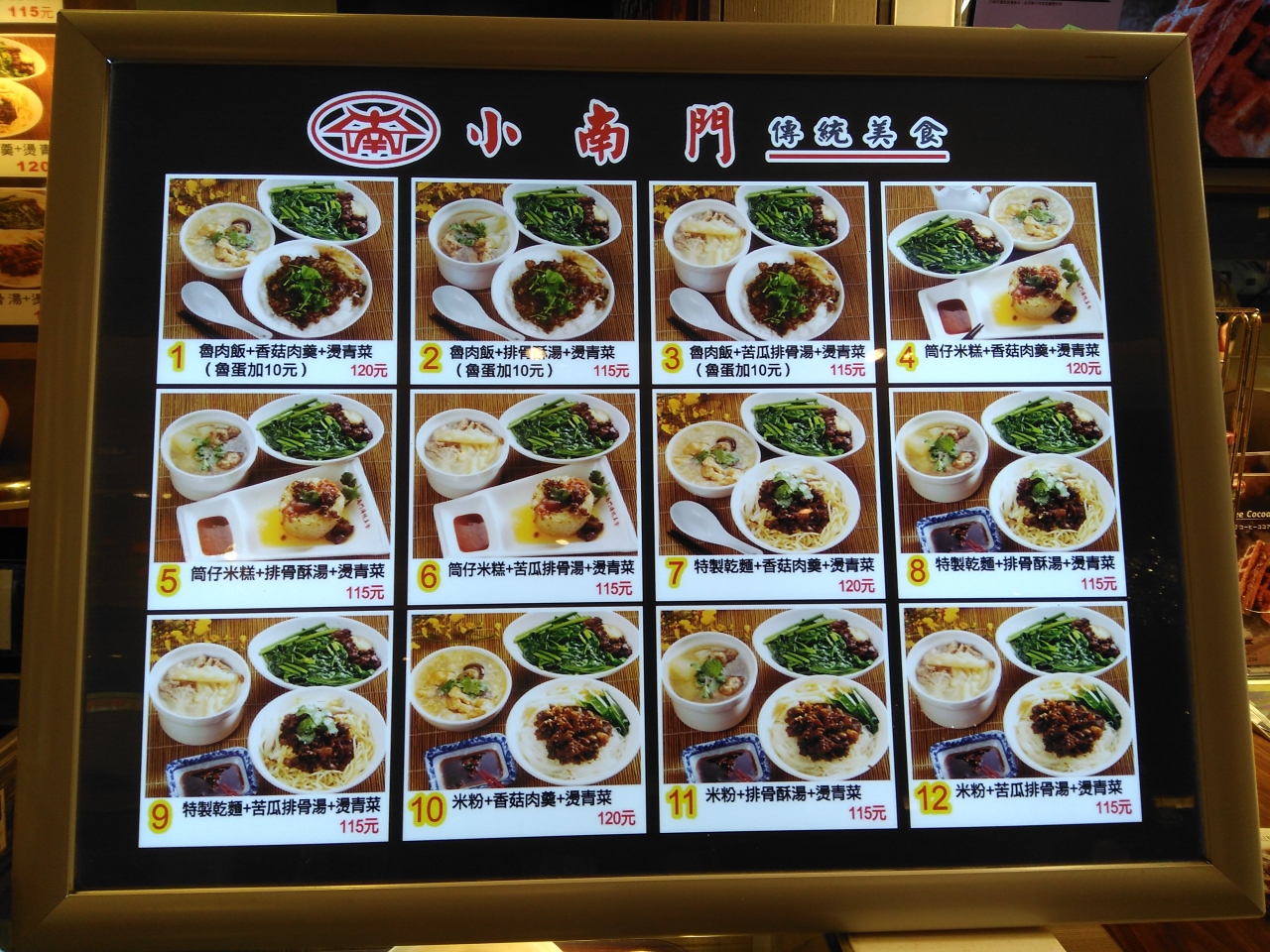 本当は鼎泰豐で小龍包と思ったのですが、長蛇の列で断念!それならばローカルフードを試してみようと<小南門 傳統美食>のかんばんを見つけそこに決めました。麺と野菜とスープのセットを注文!どれも美味しくはずれはありませんでした。何と言ってもメニューに番号が付いているので初心者としてはありがたいですね!