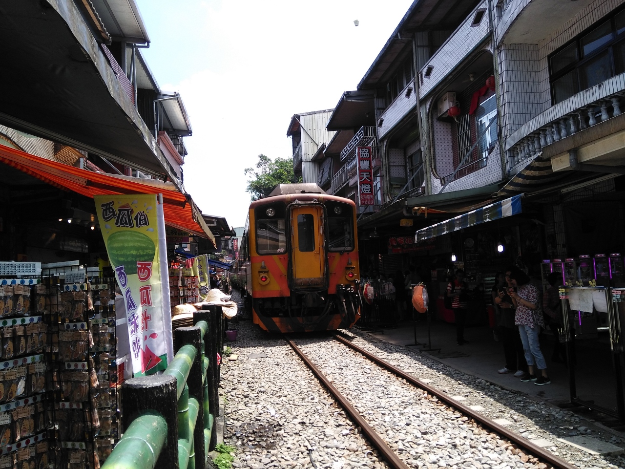 ランタン上げで有名で最寄駅はここ十分になります。写真の左方向へ進むと線路の両脇にお土産物や食堂やランタン上げのお店がところ狭しと並んでいます。1時間に1本程度電車が通過するため間近で見ることができます。とても迫力がありますよ!
