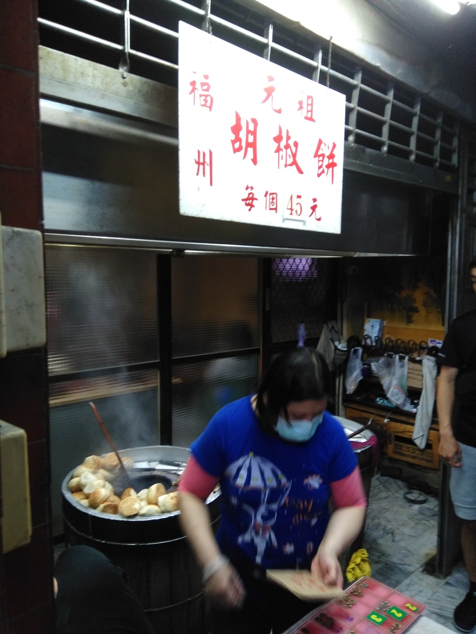 MRT龍山寺駅からすぐ近くになりますが、細い路地の間にあるので少し見つけにくいです。路地をのぞいて行列があればほぼ間違いないでしょう。赤い看板に胡椒餅の文字があります。窯の内側に張り付いているのが不思議ですが、そこが香ばしく仕上がっていて美味しいですよ!並んでも食べたい一品です