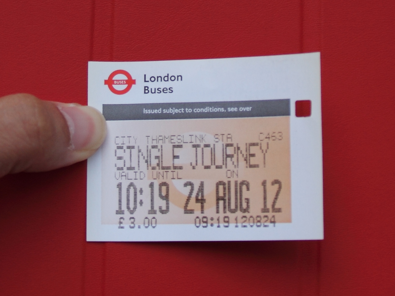 古いバスなのでOysterCard(これが使えないと高いので)は使えるのか心配でしたが、車掌さんがちゃんとハンディタイプのリーダーを持っていて、普通に使えました。